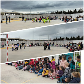 JUEGOS TRADICIONALES : la asociación de mayores de Casetas vino al cole a enseñarnos "juegos de antes": rayuela, comba, bolos...